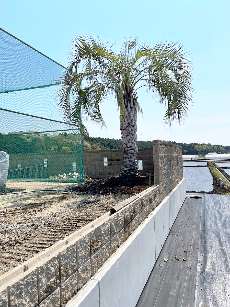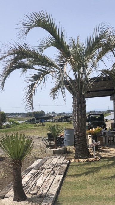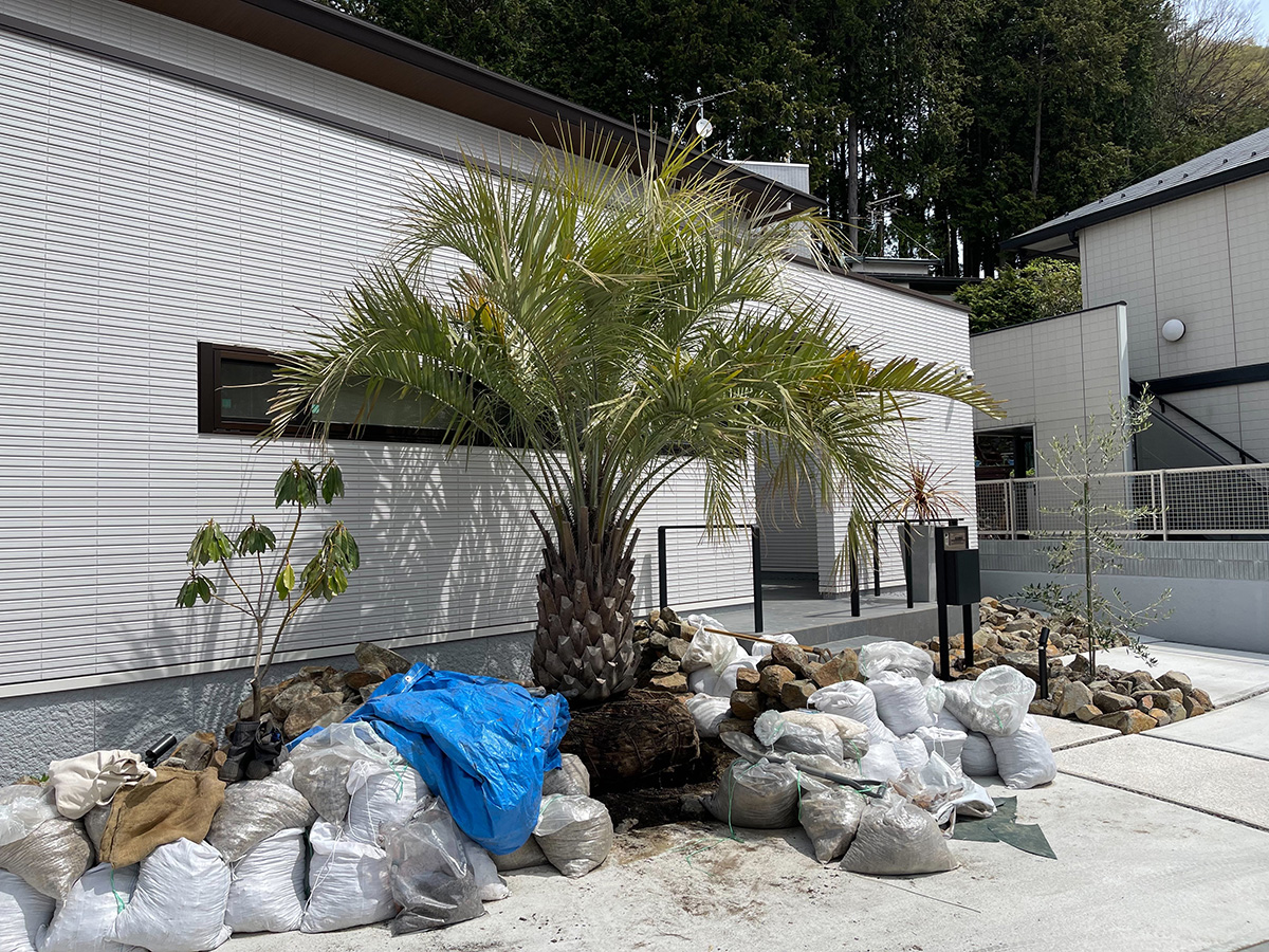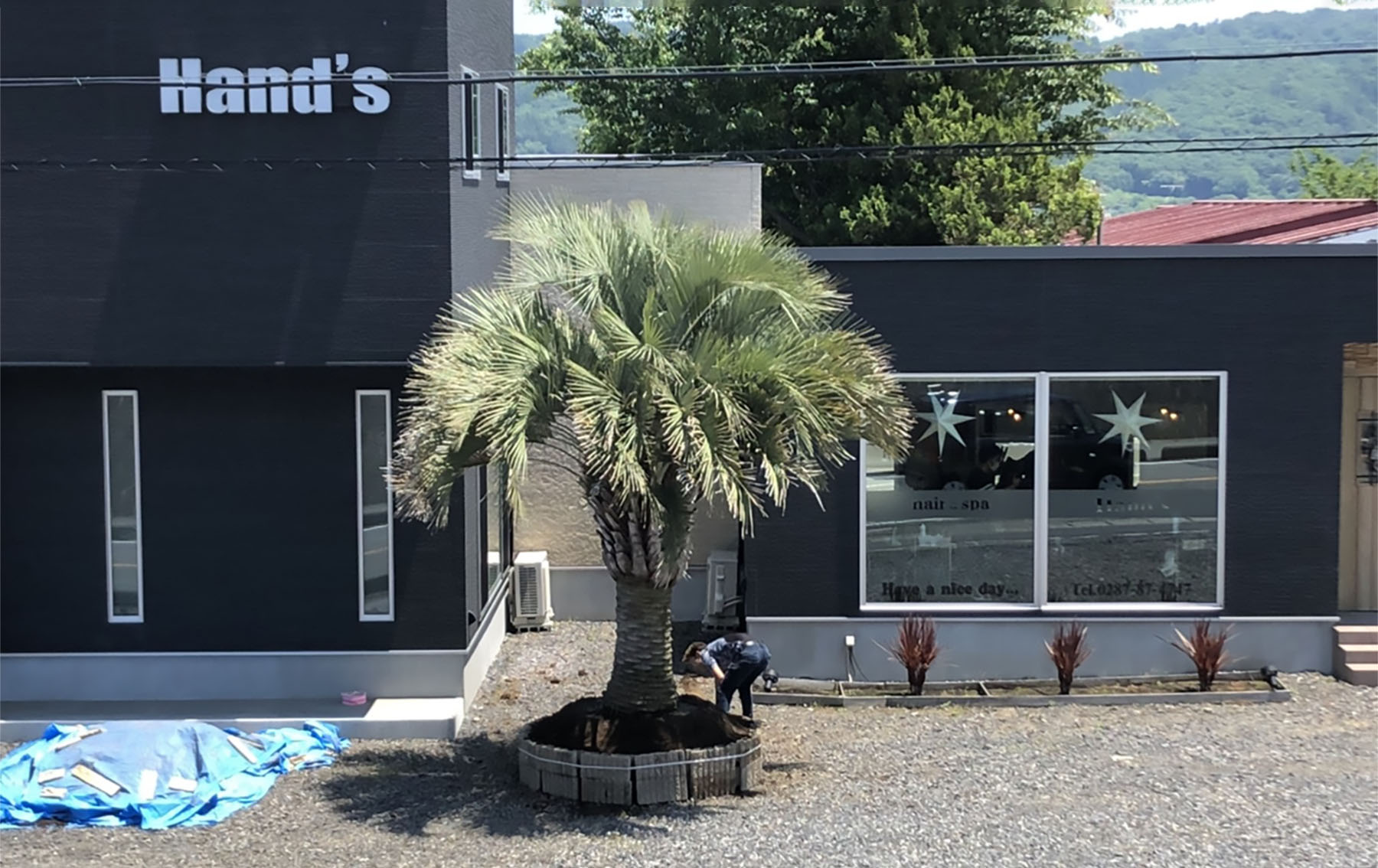 地元の美容室に枝付きの良いヤシの木を植え込みました。