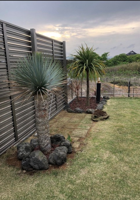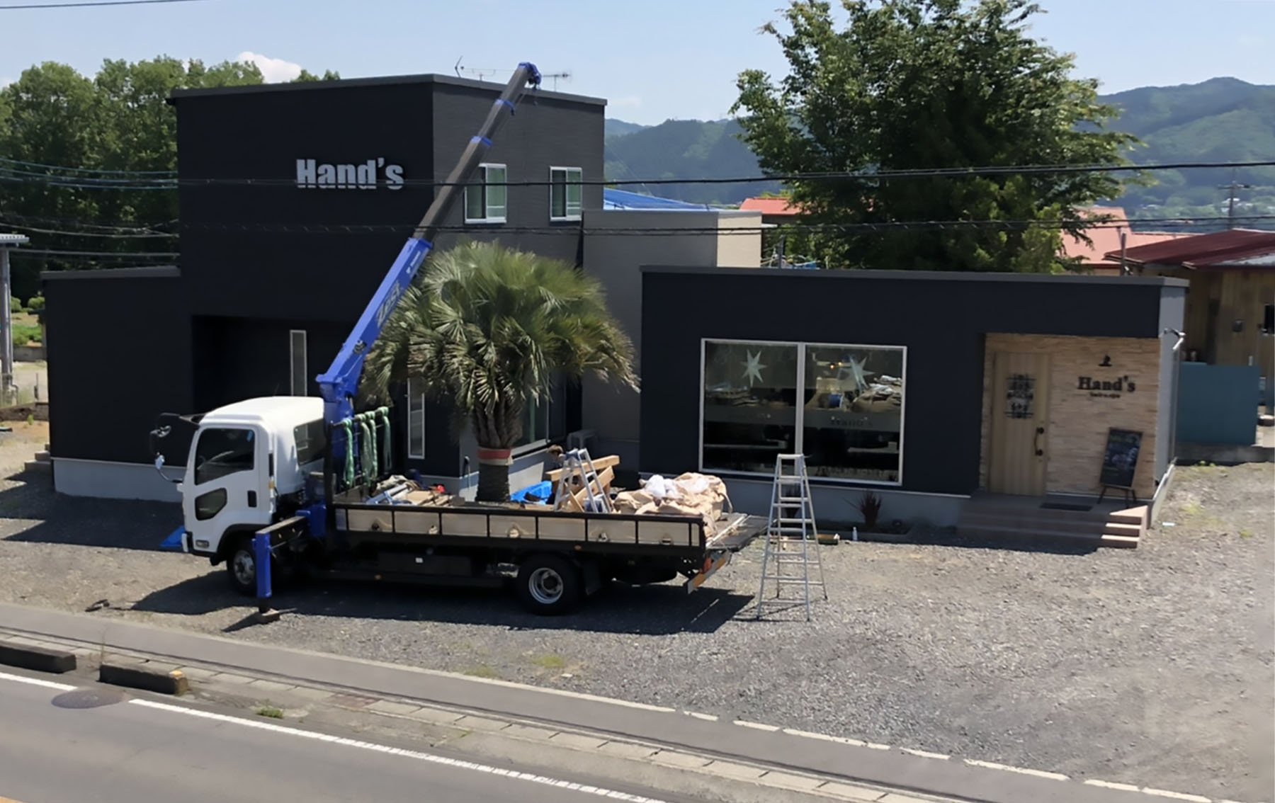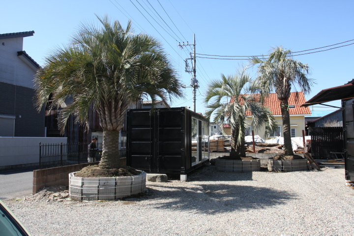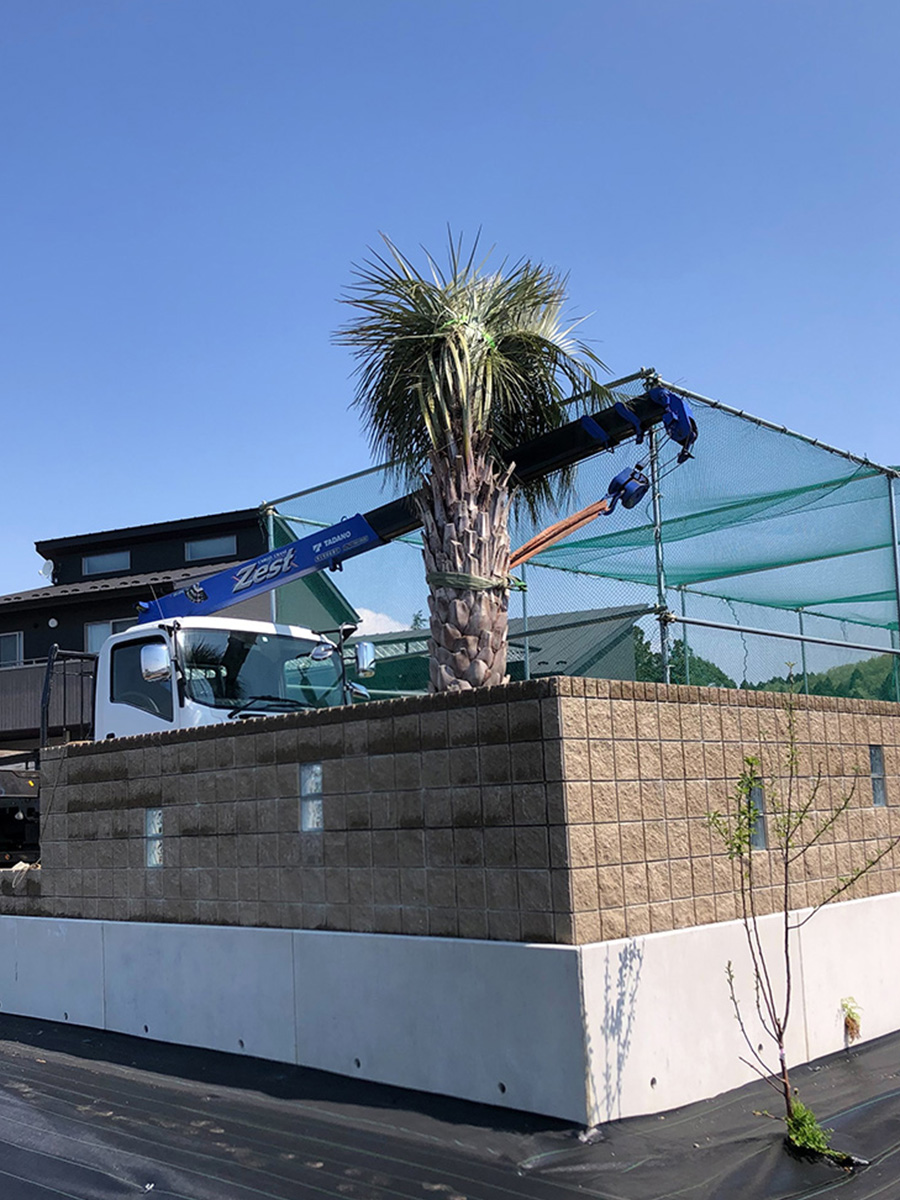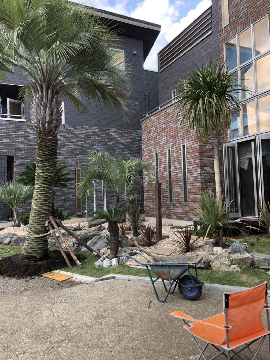 地元の美容室に枝付きの良いヤシの木を植え込みました。